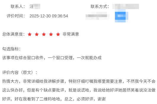 还有些让人会心一笑的“神仙好评”,不仅是办事体验的真诚反馈,更成为了政务服务有温度、有情感的生动注脚。
