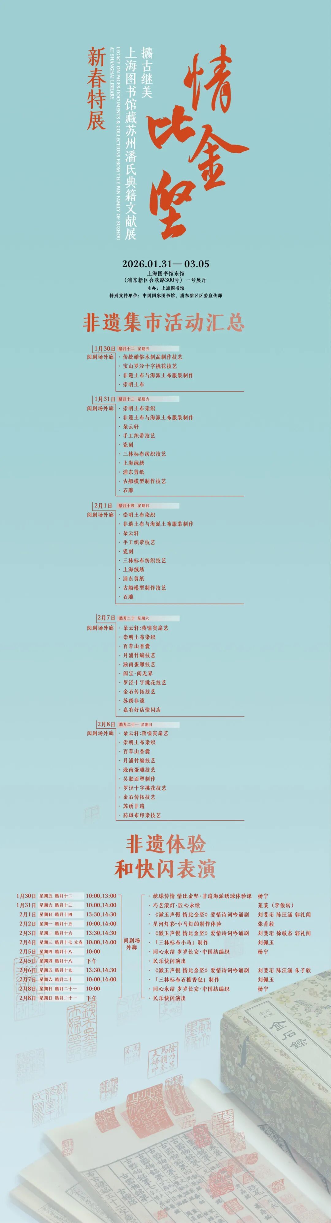 2月22日、3月3日还有两场“金石良缘:中国人的婚仪”传统婚仪体验活动,向全体读者征集新人、结婚纪念日夫妻(银婚、金婚)参与~