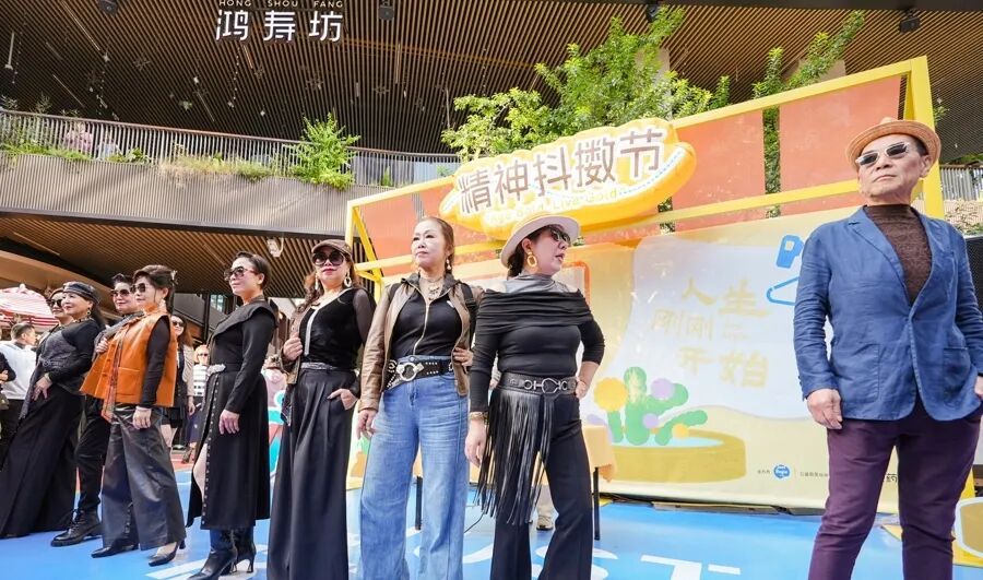 在鸿寿坊,由沪上潮流退休俱乐部“刚刚开始人生俱乐部”主办的“精神抖擞节”,为50岁以上人群打造了一场融合潮流、艺术、文化与健康的生活方式嘉年华,打破了人们对退休生活的刻板印象。