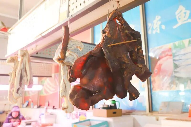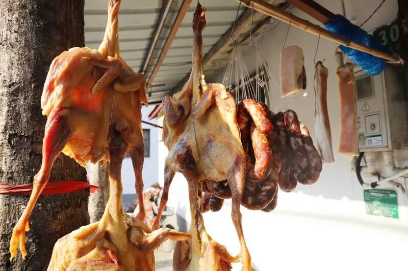 多年来,陈传红坚持自然阴干工艺,让腊味回归食材本身的香气。此外,她还精准掌握本地人的口味偏好,腊味的咸淡、搭配贴合本地饮食习惯。不少老顾客坦言:“就认她家的味道,每年过年都来买,吃着放心、踏实。”