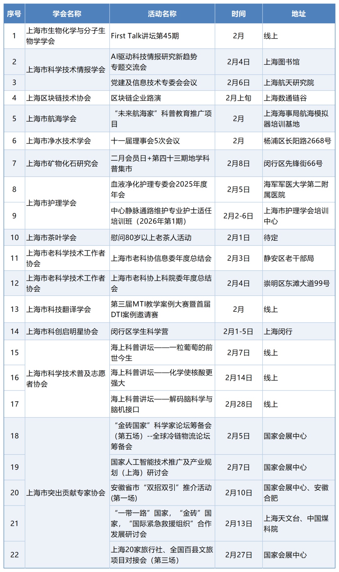 市科协所属学会2月活动预告 | 学会事