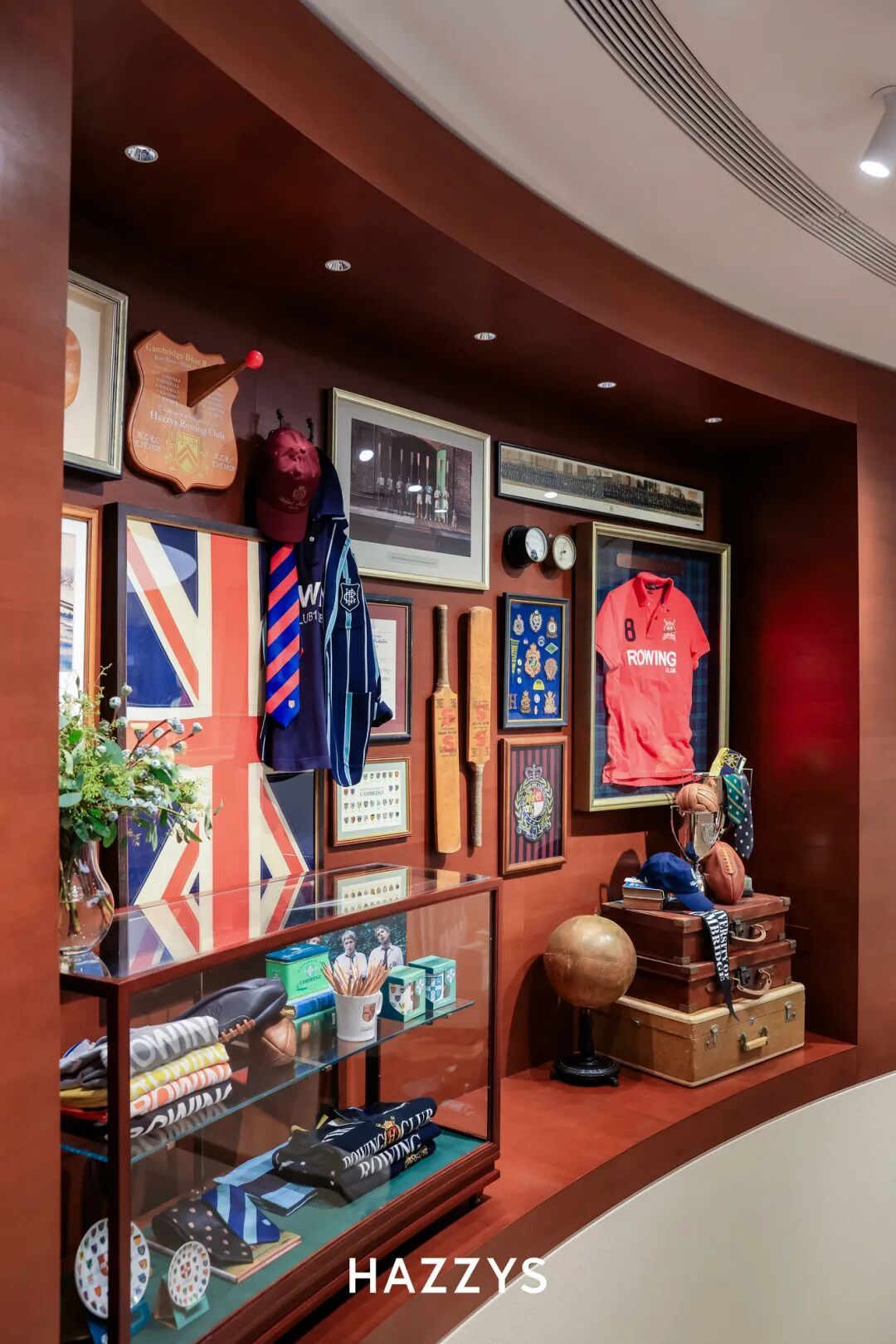 HAZZYS首家中国旗舰店通过空间去讲述品牌故事,不是简单地复制传统赛艇俱乐部,而是提取其精神内核——优雅、精准、冒险与团队精神,并用当代设计语言重新诠释。