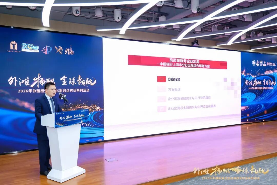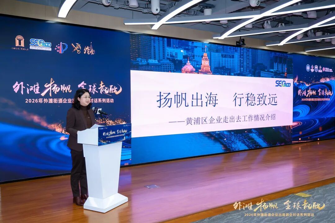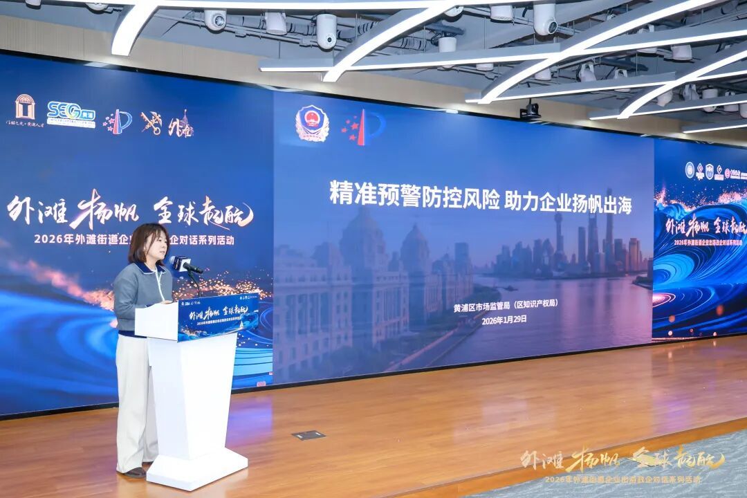 1月29日下午,作为区里系列活动之一,“外滩扬帆・全球启航”2026年外滩街道企业出海政企对话系列活动的主场活动在黄浦区行政服务中心举办,百余家外省市、上海市企业积极报名参加。本次活动由黄浦区商务委员会、黄浦海关、黄浦区市场监督管理局(知识产权局)、外滩街道办事处联合主办,活动得到上海中小企业国际合作协会、黄浦区企业出海服务中心、欧中企业高管联盟(ECEA e.V.)、浙大校友企业(沪杭)合作联盟、金外滩集团、中国银行黄浦支行的大力支持。