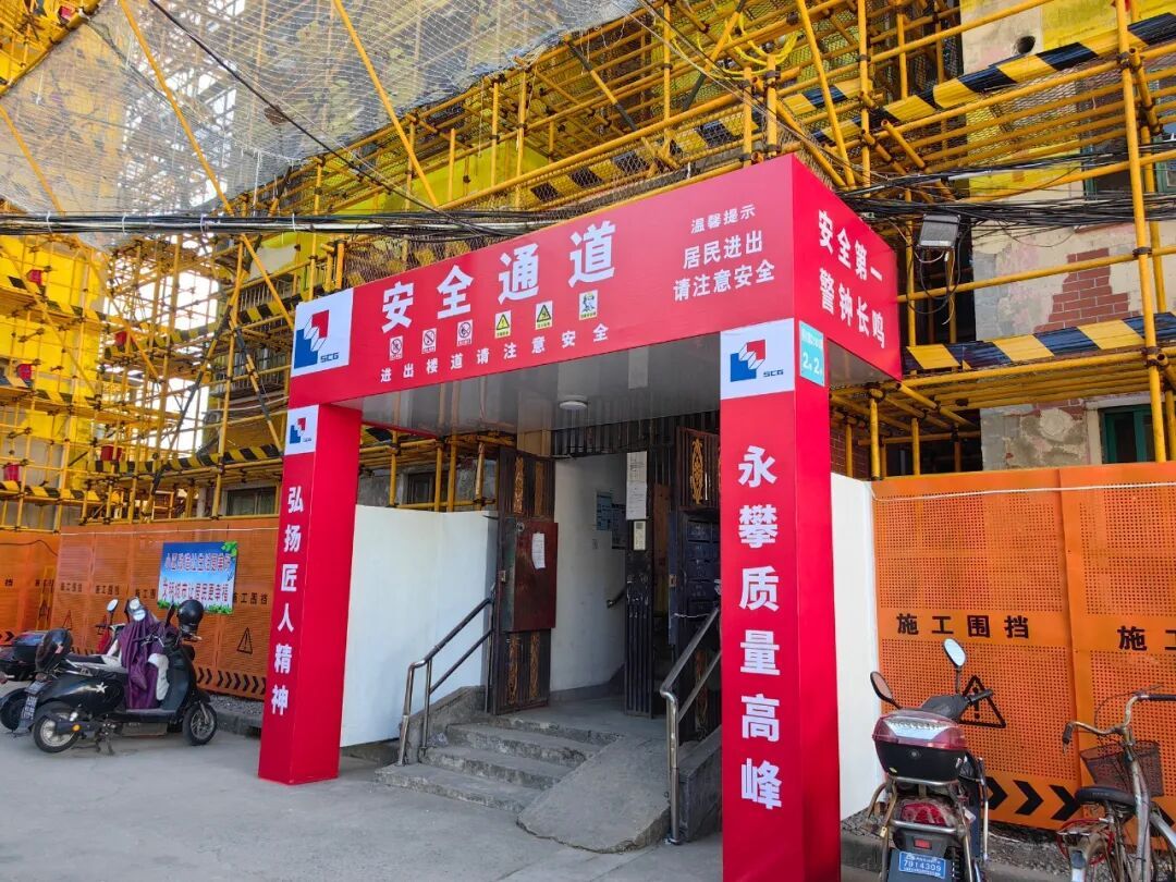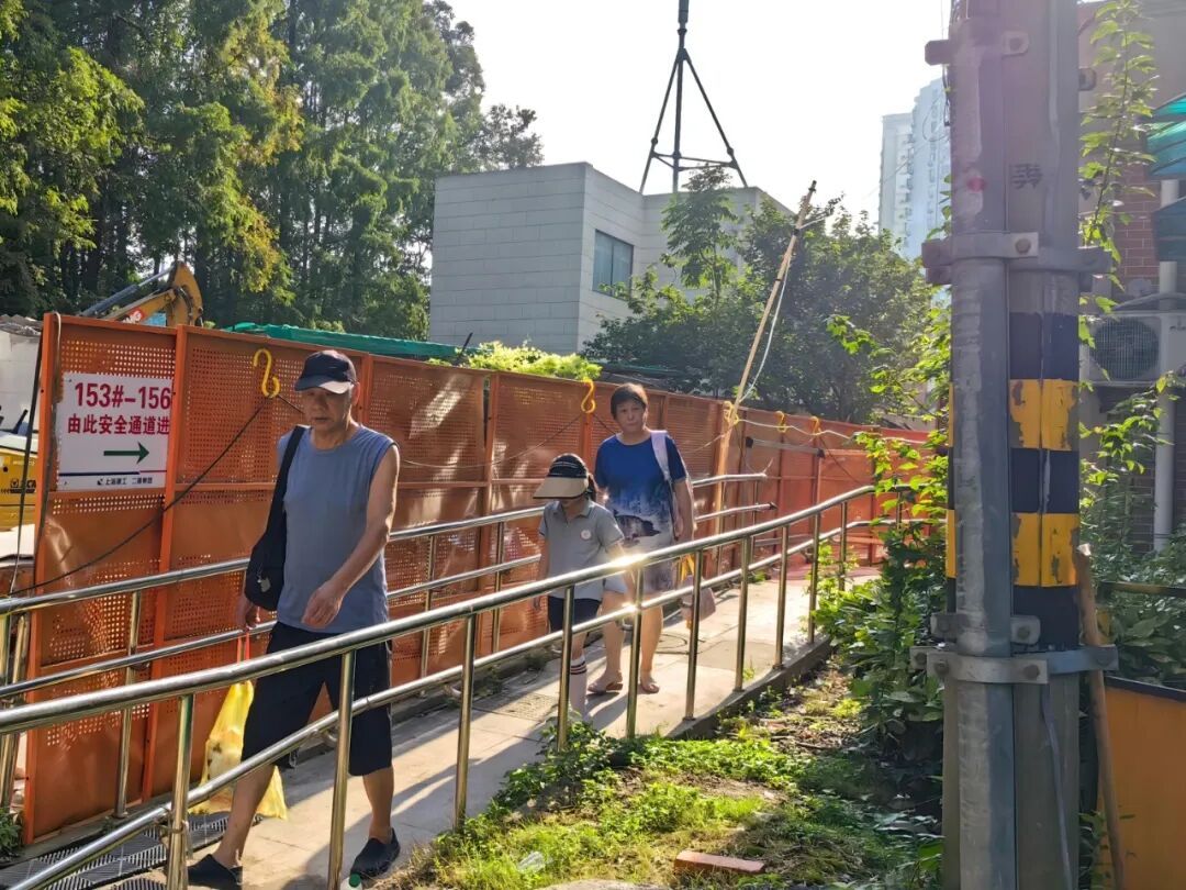 空间管理上,科学统筹施工组织与居民通行需求,创新采用“道路半幅开挖+居民临时通道”模式,辅以夜间灯带和通行指示标识;局部全封闭施工时主动开辟3处临时边门,持续发布《居民夜间通行示意图》,最大限度降低施工对居民生活的干扰。从新建的封闭管理到修缮的开放协同,我们成功实现了施工节奏与居民生活的深度融合,切实兑现了“施工不扰民、进度有保障”的承诺。