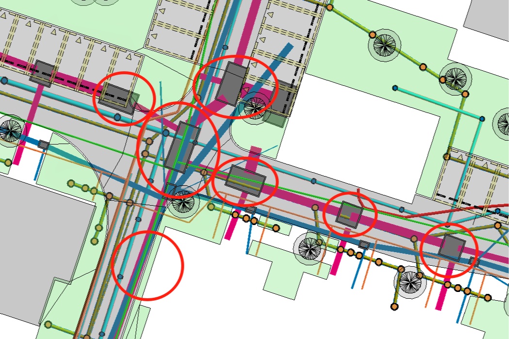 通过构建高精度实景三维数字孪生模型,我们提前预警并可视化呈现了5612处管线碰撞点,为精准施策提供了科学依据。面对海量碰撞点,我们以工期最紧、管线最复杂的A区为突破口,牵头组织多专业力量集中攻坚,一个月内即完成A区管线平衡。
