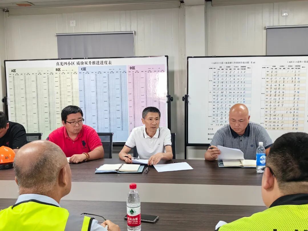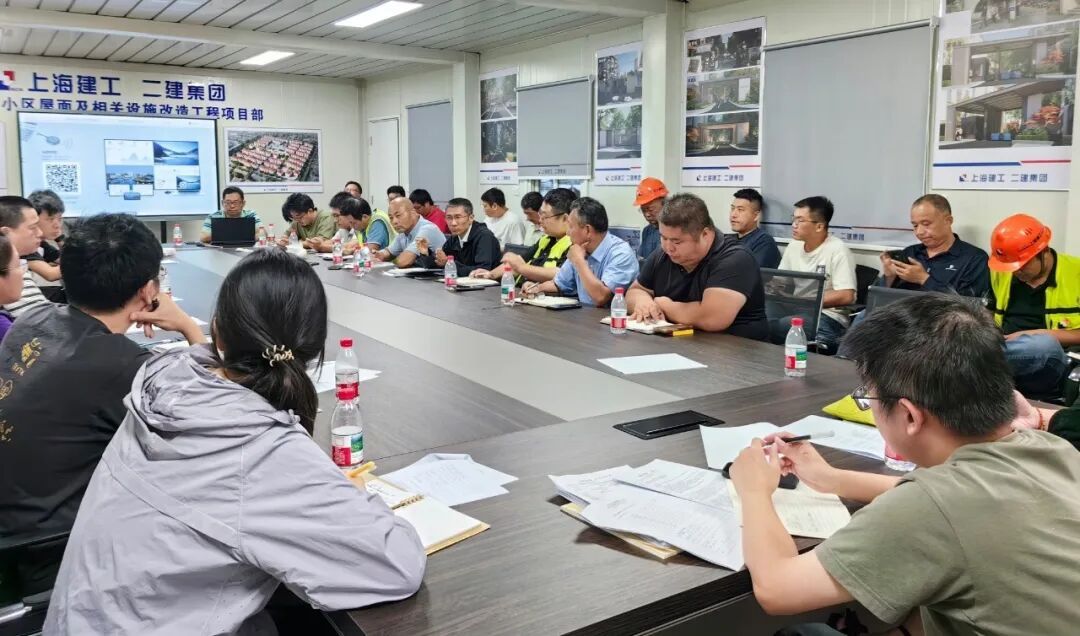 在组织架构上,我们着力构建“集团-施工-属地”三级联动体系:集团层面专班靠前指挥,统筹决策;施工层面强力整合设计、总包、监理及各专业分包力量,推行现场驻点、集中办公,确保指令畅通、步调一致;属地层面则携手区更新中心、真如镇街道建立三方协调联动机制,并与居委会、业委会及集团下属真如物业构筑“4点例会+线下接待点+线上沟通群”的多元共治平台,真正实现了上下贯通、左右协同、响应迅捷、闭环管理。