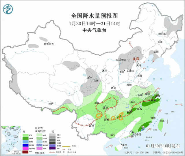 昨天起我国中东部出现大范围雨雪天气,今天雨雪影响范围会更广,长江中下游一带也会出现雨、雨夹雪、雪等不同降水相态转换,一些山区可能出现积雪,高海拔山区还可能出现冻雨,对交通和城市运行造成不利影响,最近两天有出行计划的市民请务必关注气象和交通信息。