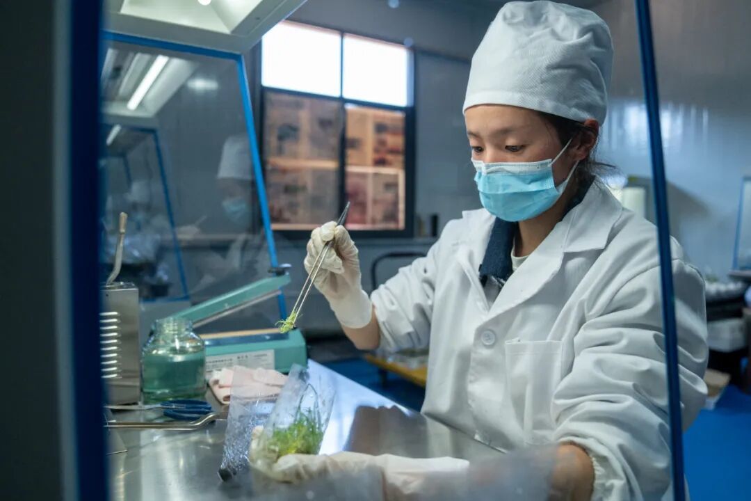 在插甸镇高原特色现代农业产业园区内,依托沪滇协作的政策与资金支持,插甸镇精准锚定中药材产业发展方向投入沪滇协作资金,联合武定小高興生物科技有限公司,建成了1680平方米的高端冰球子(白芨)基因植物工厂,构建起"种植基地+植物工厂"双轮驱动的产业格局。