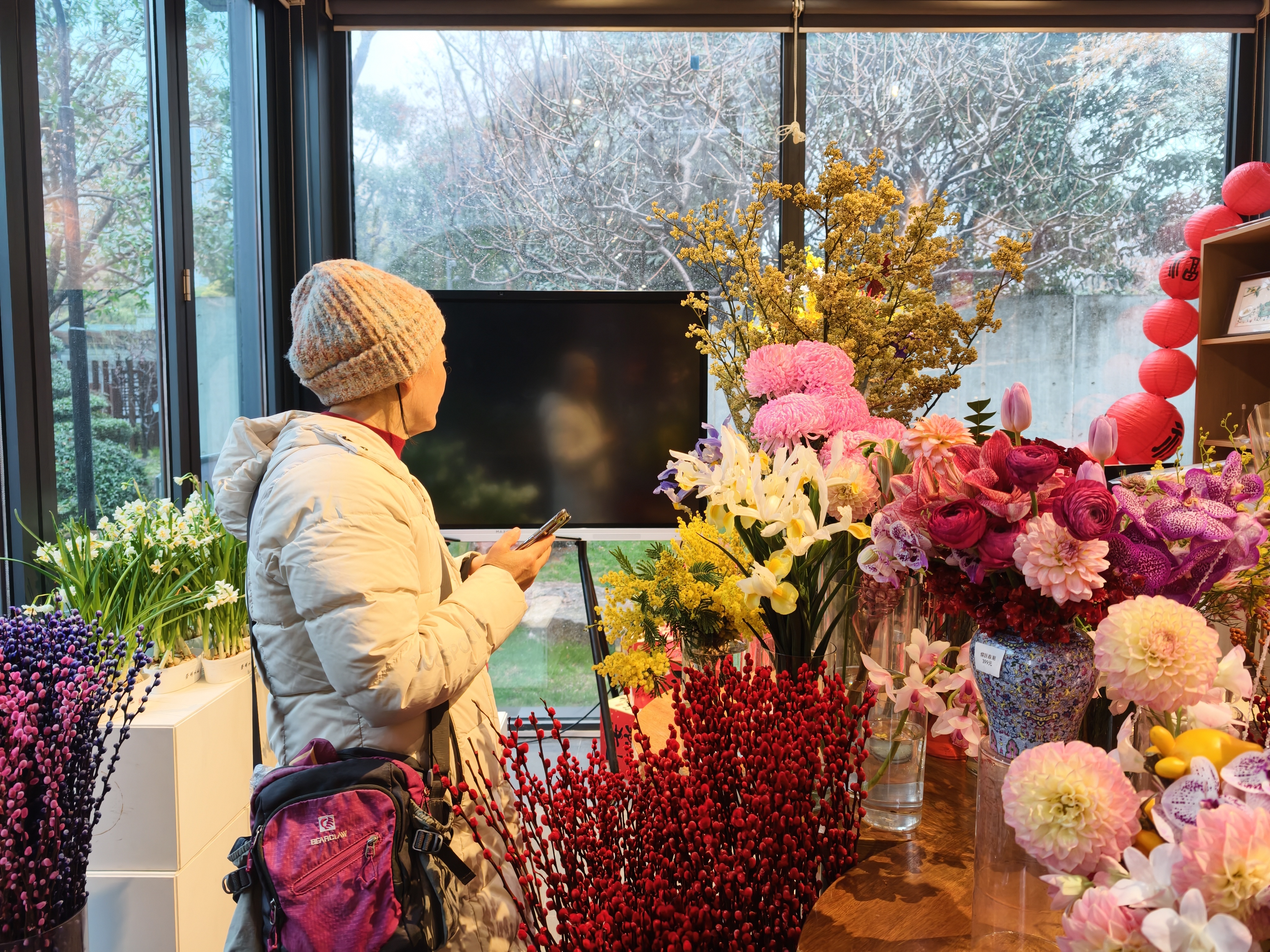这里不仅是购花之处,更是社区园艺生活的体验场。采访时,楼下的教室里正在进行一场插花课程。家住附近的骆女士是这里的常客,她告诉记者:“我经常过来散步,顺便逛逛。”看到市民园艺中心内已布置得年味十足,她表示很心动:“年底一定要来抱一盆好看的回家。”当得知年前还将推出年宵花主题课程时,她表现出浓厚的参与兴趣:“这类动手课程很有意思,如果有时间我很愿意来参加学习。”
