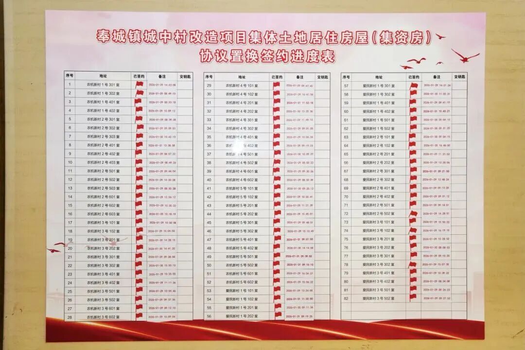 短短两天半,82户居民全部签约,签约率达100%!奉城镇“城中村”改造项目集体土地居住房屋(集资房)集中签约工作,在高效推进与浓浓温情中圆满落下帷幕。