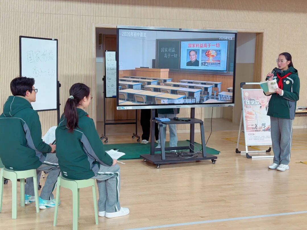 八年级学生则以电影《钱学森》的“爱国热忱”为内核,聚焦“国家安全”主题,通过情景剧演绎、科学小实验、海报布展等多元形式,解读“国家利益至上”的深刻内涵,将科学家的报国情怀转化为自身的责任担当。