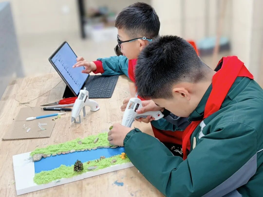 七年级学生聚焦“滨水廊道STEM”主题,对留云湖及周边沿河步道展开调研,围绕生态保护、休闲娱乐、社区服务三大维度,测绘空间、分析数据,用3D模型和实物模型呈现社区空间创新构想,让科学知识真正服务于生活改善。