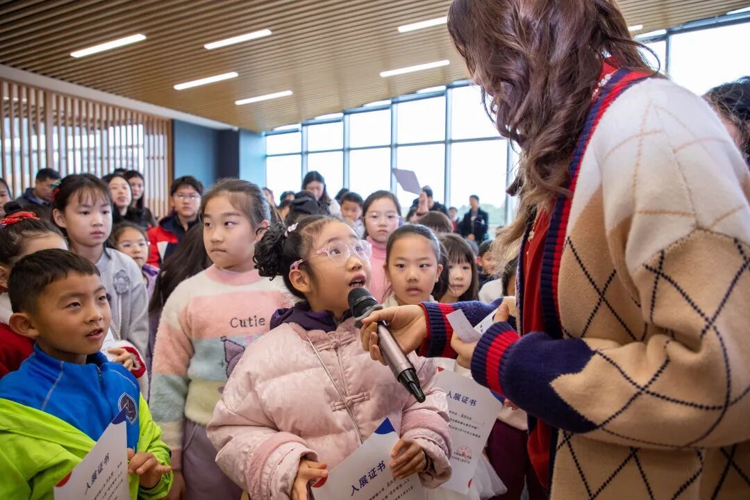“通过展览,我看见了技术赋予童年的温度,看见了课堂的边界在艺术馆中消失,也看见了每一幅画都在发出独特而清晰的声音。”明强小学副校长刘依婷说。开幕式上,学生代表以对话形式分享创作灵感,教师与家庭展开互动问答,中国美院策展人李曙光则带领观众深入解读画面背后的思考轨迹。