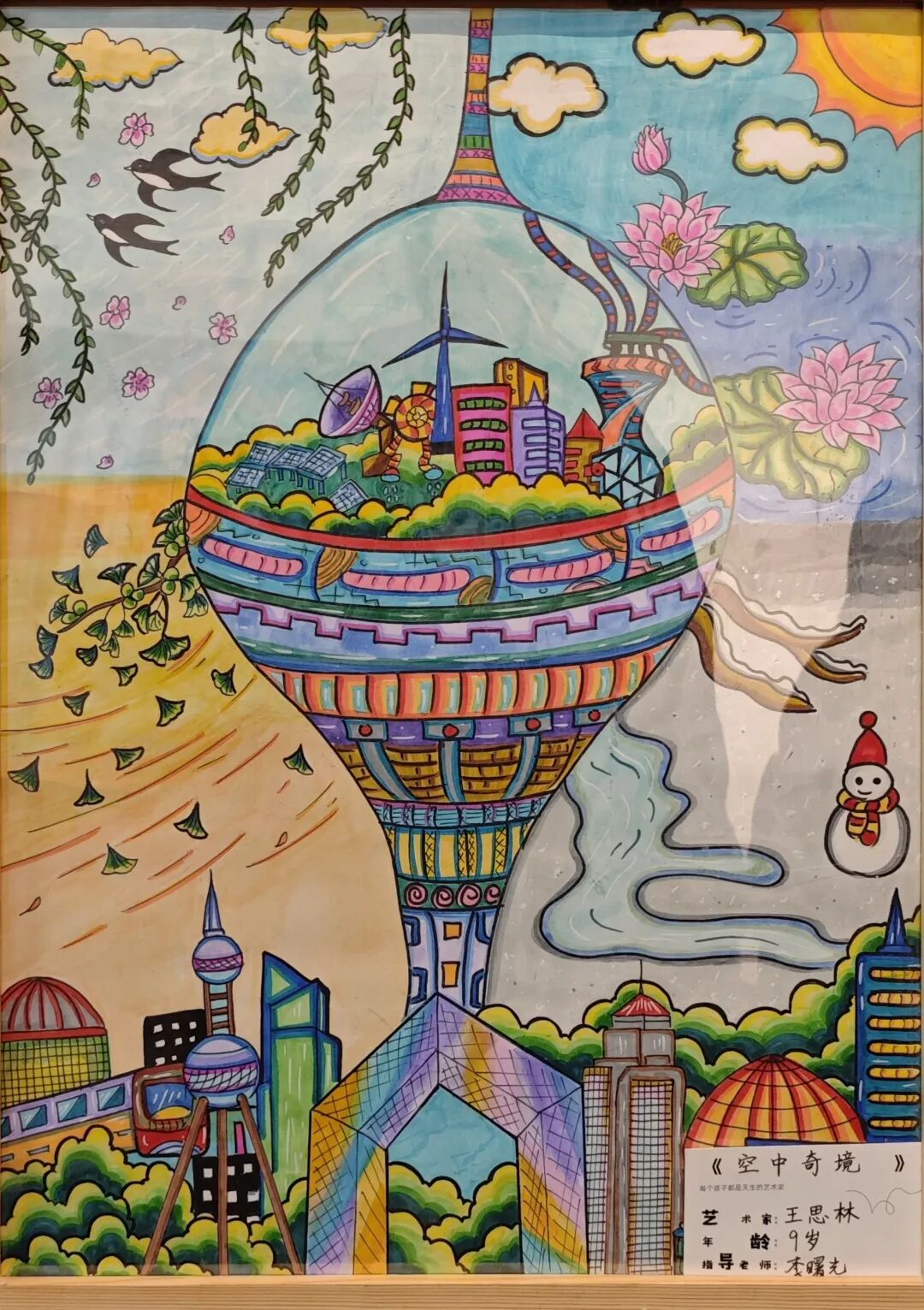展览围绕“AI的容颜”“我们与AI”“智慧的另一面”“未来启示录”四个板块展开。作品虽笔触稚嫩,却展现出惊人的观念多样性与表达勇气。儿童天然的色彩直觉、不拘一格的构图,与人工智能这一理性主题碰撞出真挚而充满张力的视觉叙事。