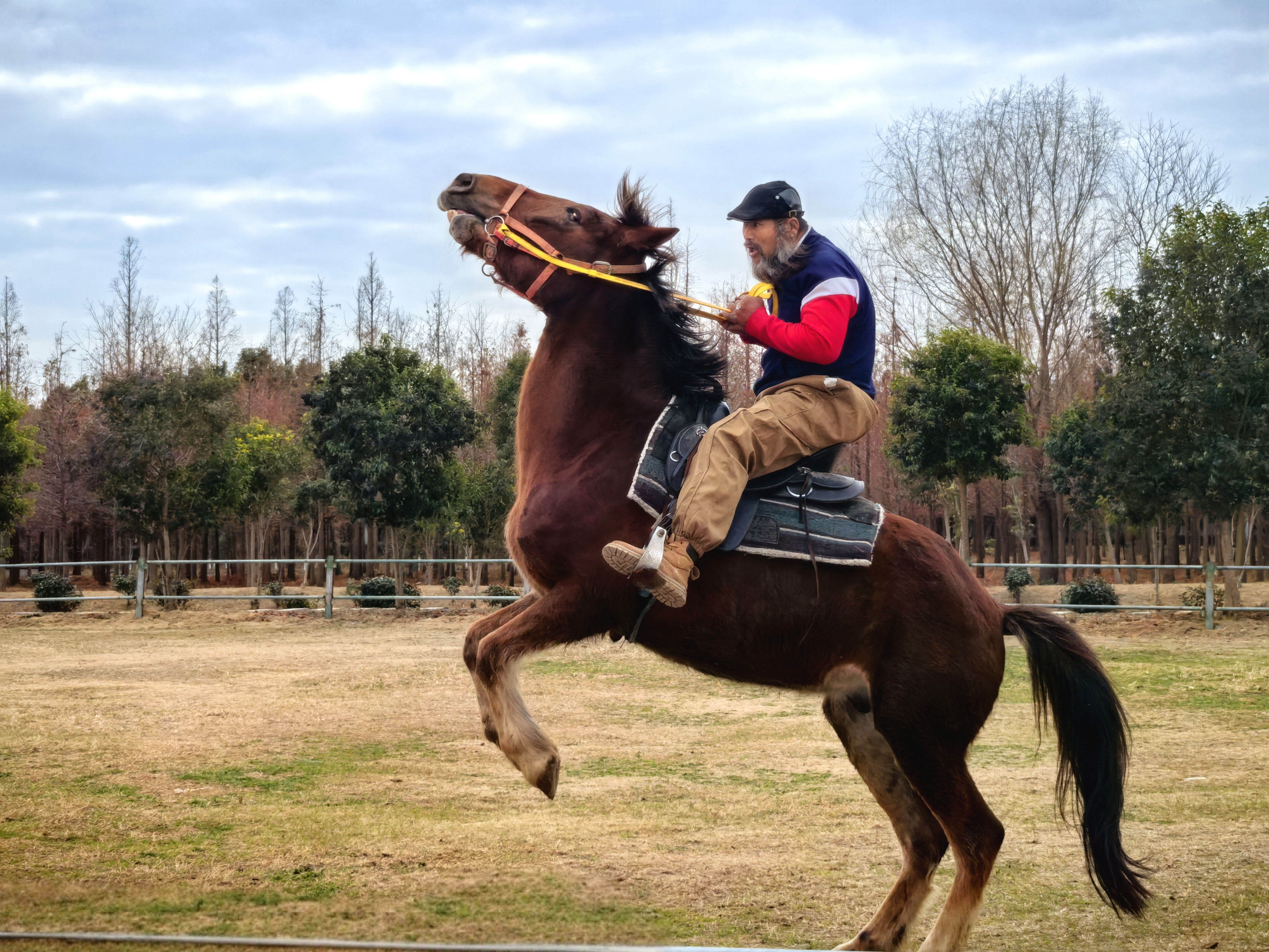 工作人员展示马术