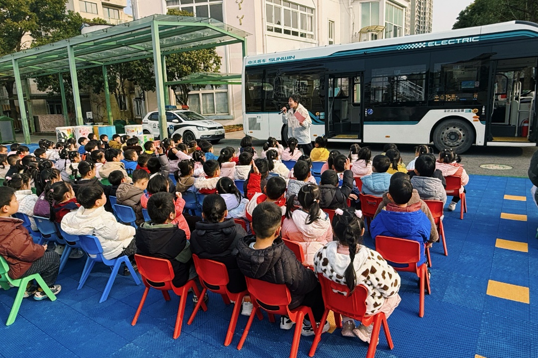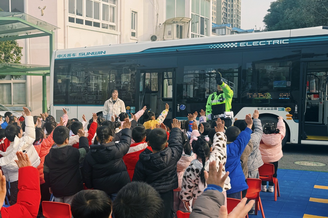 在“爱立方”党建品牌引领下,宝山区杨行中心幼儿园党支部携手宝山公交公司党支部等部门,量身打造了一场趣味十足的“‘交’个朋友,平安‘童’行”交通安全主题活动,把对萌娃出行安全的暖心守护落到了细微处。 点击观看视频 在这场“园-家-社-企”联动共育的安全实践课堂中,宝山公交公司党员志愿者、资深驾驶员与交警携手走进校园,为孩子们带来了一场沉浸式交通安全教育。 活动现场,交警叔叔以标准手势现场教学,孩子们在模仿互动中理解规则、内化文明;党员志愿者引导孩子们登上公交车,从识别安全标识到体验乘车规范,将“站稳扶好”“先下后上”等常识转化为可触摸、可操作的生活实践。 活动将“社会之爱”融入教育现场,让专业力量成为幼儿成长的守护者,生动诠释了“家庭之爱打底色、学校之爱塑根基、社会之爱拓格局”的“爱立方”育人内涵。 杨行中心幼儿园党支部践行陶行知“生活即教育”理念、深化教联体共育机制。通过党建引领,幼儿园打破园内教育场景局限,以“党建红”凝聚“社会力”,将公交、交管等专业资源系统引入育人过程,实现从“单点教学”到“场景协同”的转变。孩子们在真实职业角色的陪伴中,学到安全知识,更感受到党员志愿者的奉献精神与社会各界的温暖支持,在潜移默化中筑牢了规则意识与责任认同。 活动以幼儿安全成长为切入点,将红色引领、专业守护、社会关爱传递给每一位幼儿,既为孩子们的平安成长筑牢防护屏障,更凝聚起基层党建与教育育人、社会共治的强大合力,为构建平安校园、和谐社会注入幼教力量,让“爱的教育”在护航幼儿平安成长的每一步中落地生根。 此次活动既是基层党支部践行党建引领基层治理、落实共建共治共享理念的具体行动,也是深化“爱立方”党建品牌内涵、推动教育高质量发展的生动实践。