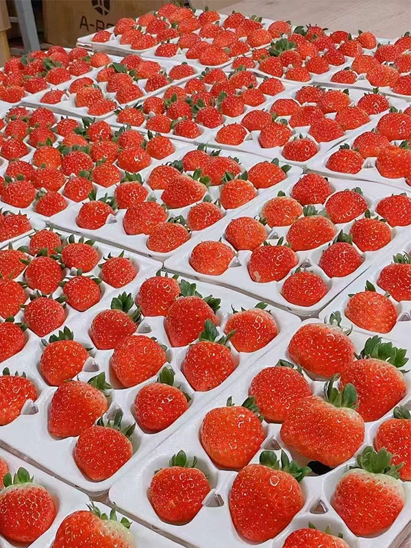青村镇带来本镇特色农产品。红颜、章姬、香野等草莓鲜润饱满,火龙果及果干清甜回甘,雉鸡蛋风味独具,还有黄桃汽水等系列产品,一口沦陷,全是来自奉贤土地的自然馈赠。