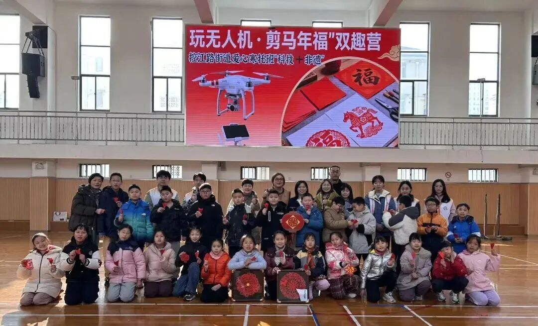 控江路街道办班点内,60名来自辖区1-5年级的小学生齐聚于此,迎来以“玩无人机・剪马年福”为主题的双趣营首日活动。在这里,未来感的无人机竞技与传统非遗剪纸相遇,孩子们在动手动脑中,开启了别样的新春寒假。