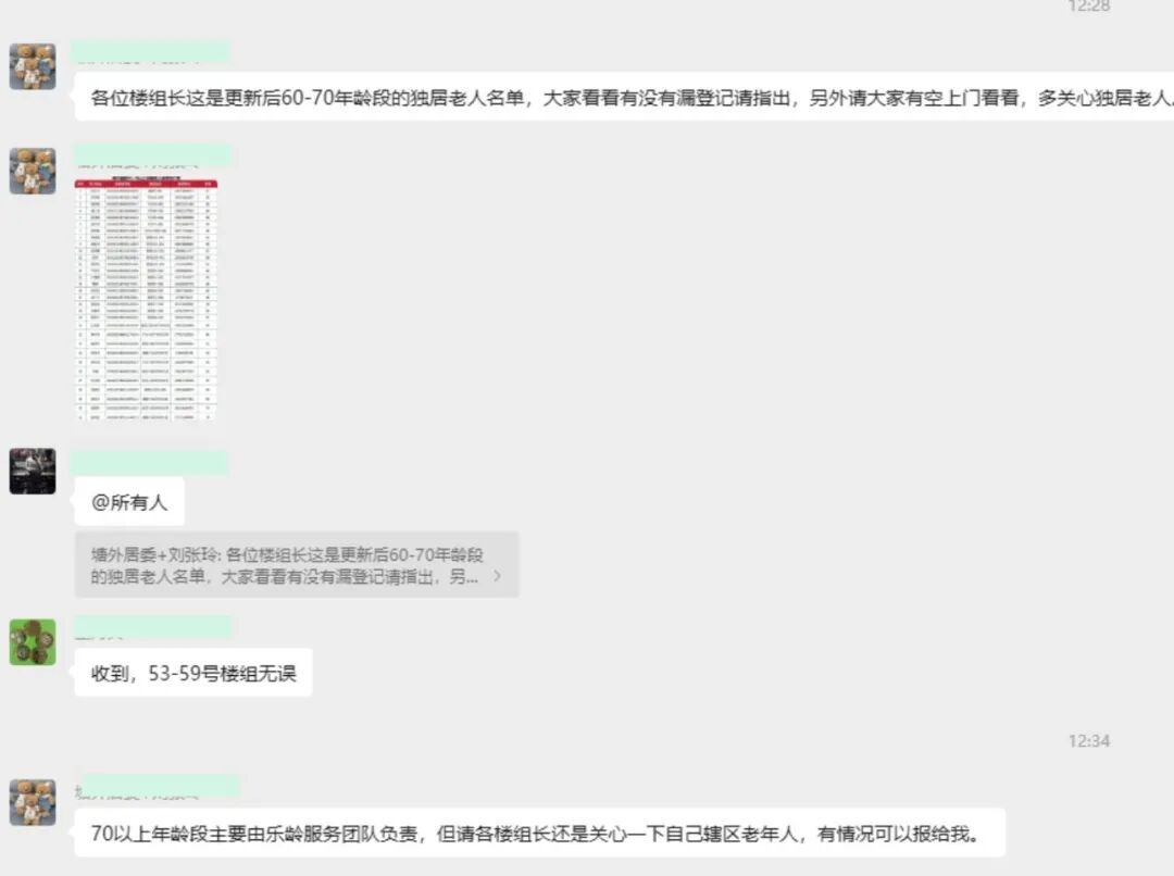 为了让服务更高效,两位阿姨牵头组建了微信志愿服务联络群,实时同步老人需求,社区居民也能随时提供线索、参与服务接力,真正实现了“需求一键响应,服务马上到位”。