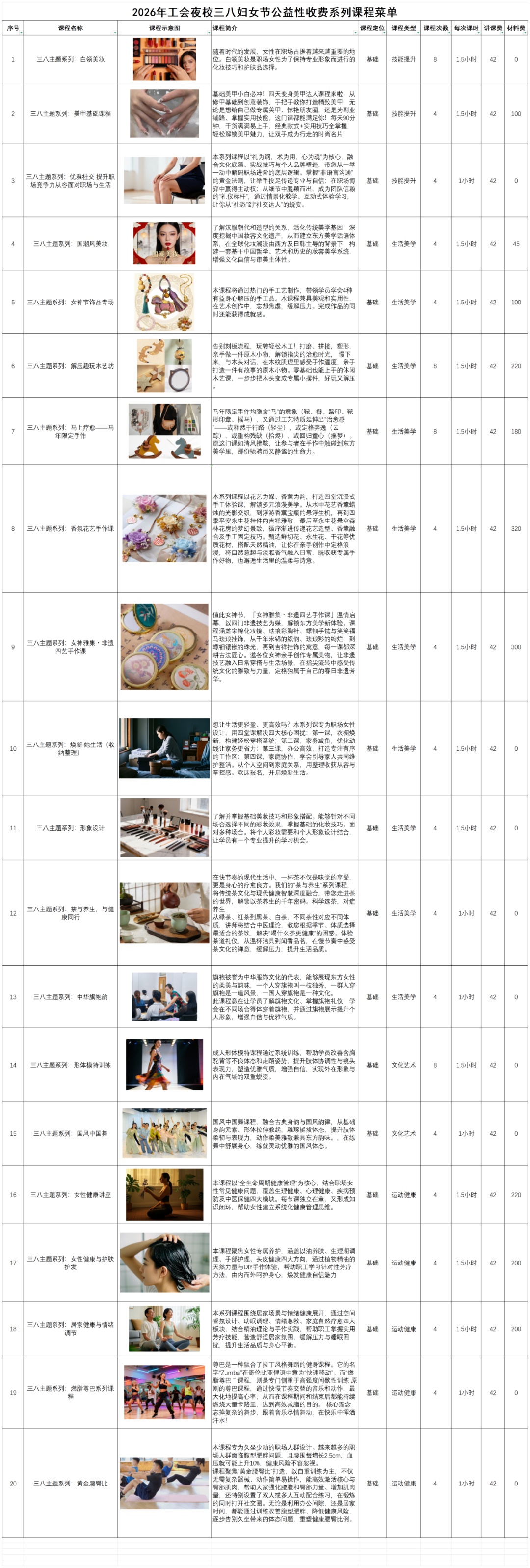 工会夜校4次系列课程,