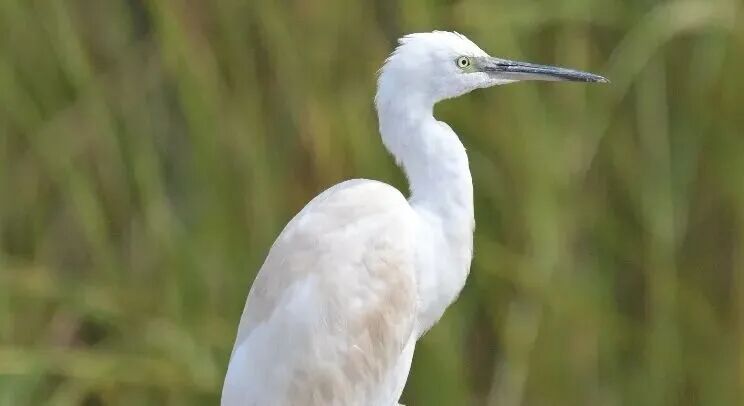 雌雄相似。全身雪白,脚黑色,嘴裂不超过眼后,为本种区别于大白鹭的显著识别特征。非繁殖羽喙黄色,喙尖黑色。繁殖羽喙黑色,眼先黄色,胸及背具蓑羽。