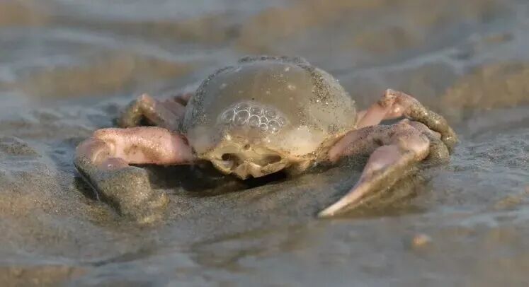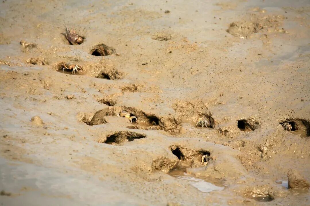 底栖动物是指生活史中大部分时间栖息于水体底部的水生动物类群,是河口生态系统的重要组成部分。九段沙湿地的底栖动物的组成和特点代表了长江口底栖生物的多样性和典型性。每年秋冬季节,都会有大量野生中华绒螯蟹洄游到九段沙附近水域越冬和产卵。目前九段沙记录到126种大型底栖动物,常见的种类有隐秘东方相手蟹、谭氏泥蟹、拟沼螺、中国绿螂等。