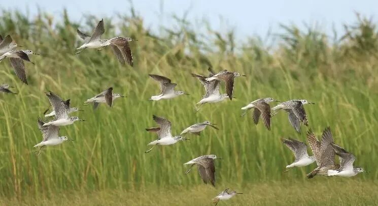 九段沙位于东亚—澳大利西亚鸟类迁徙路线的中点,滩涂为鸟类提供了得天独厚的栖息环境,是众多迁徙鸟类的停歇地和越冬场所。