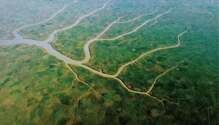 一种奇特的沉积地貌,由滩涂上一道道蜿蜒曲折的潮沟组成。从天空俯瞰,这些潮沟由海向陆而生,犹如在滩涂上生长起来的参天大树,因而被形象地称作“潮汐树”。