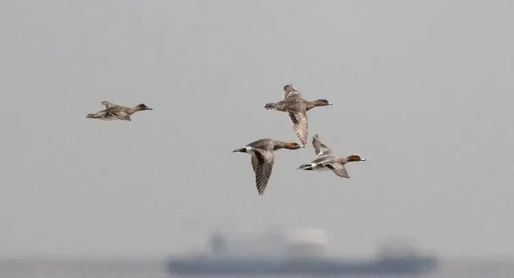 雁鸭类为九段沙湿地冬季鸟类的主要类群。它们多在浅水区域和潮沟附近活动,取食植物幼嫩的根茎和水生生物。每年10月上旬前后陆续从北方迁徙而来,次年3月中旬前后又陆续返回北方。