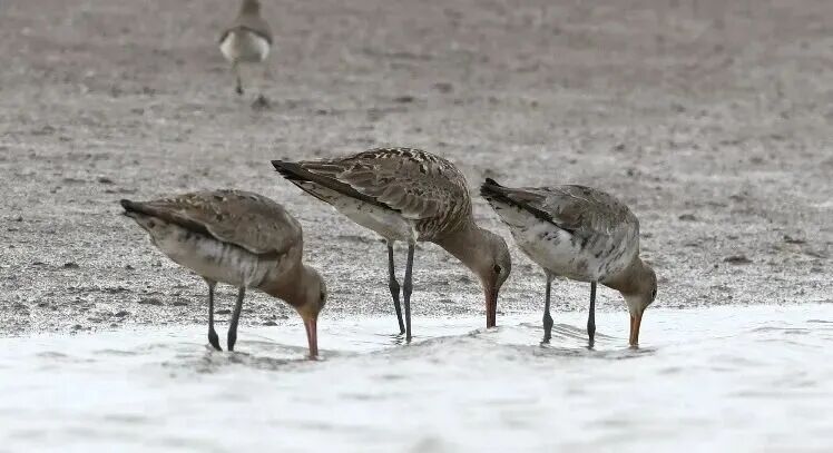 鸻鹬(héng yù)类为九段沙春秋季迁徙时期的重要鸟类类群。另外,还有一部分鸻形目鸟类在九段沙湿地越冬。鸻鹬类主要在光滩活动,取食贝类、螺类等底栖动物。