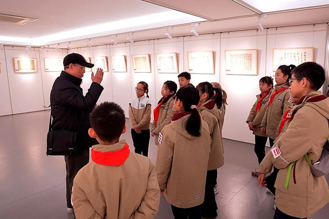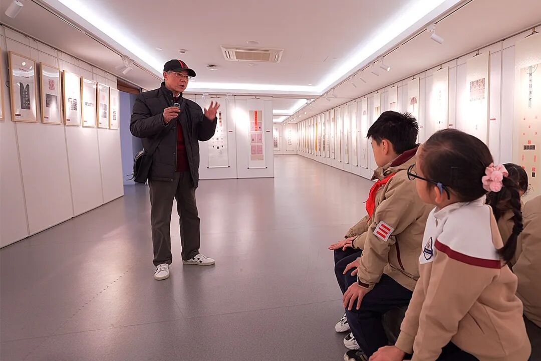 近日,正在静安区文化馆展出的2026年静安区学生书法篆刻迎新作品展“变身”书法教学的“第二课堂”。