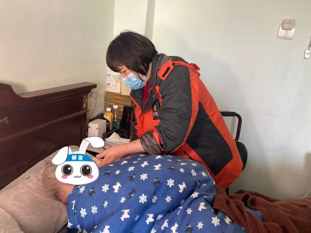 王英和另一位隔天上门的专业护理员配合,小心翼翼地为曹老伯翻身、擦洗、更换衣物和纸尿裤。每一个动作都轻柔而熟练,避免给老人带来不适。曹老伯虽然言语不清,但眼神柔和了许多。