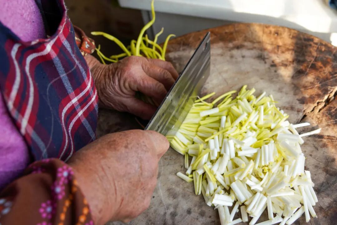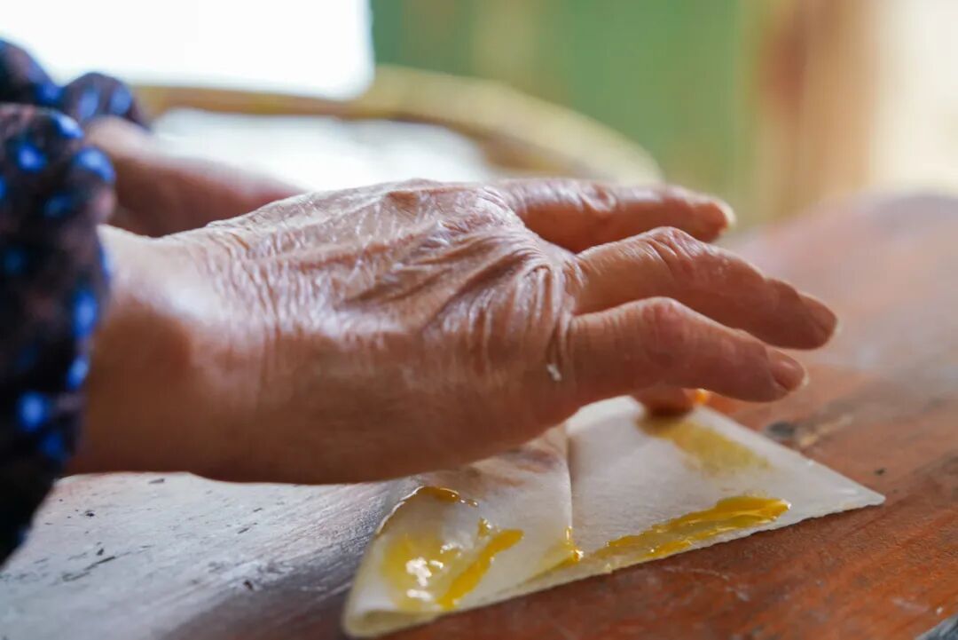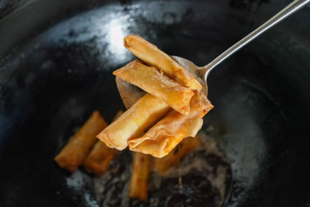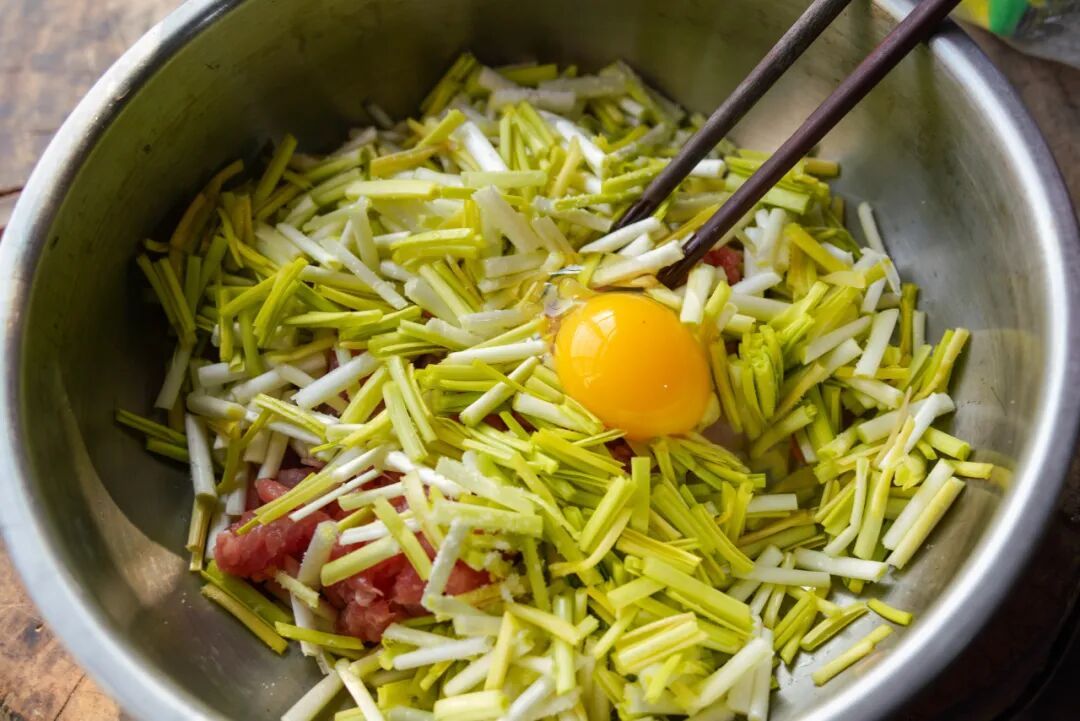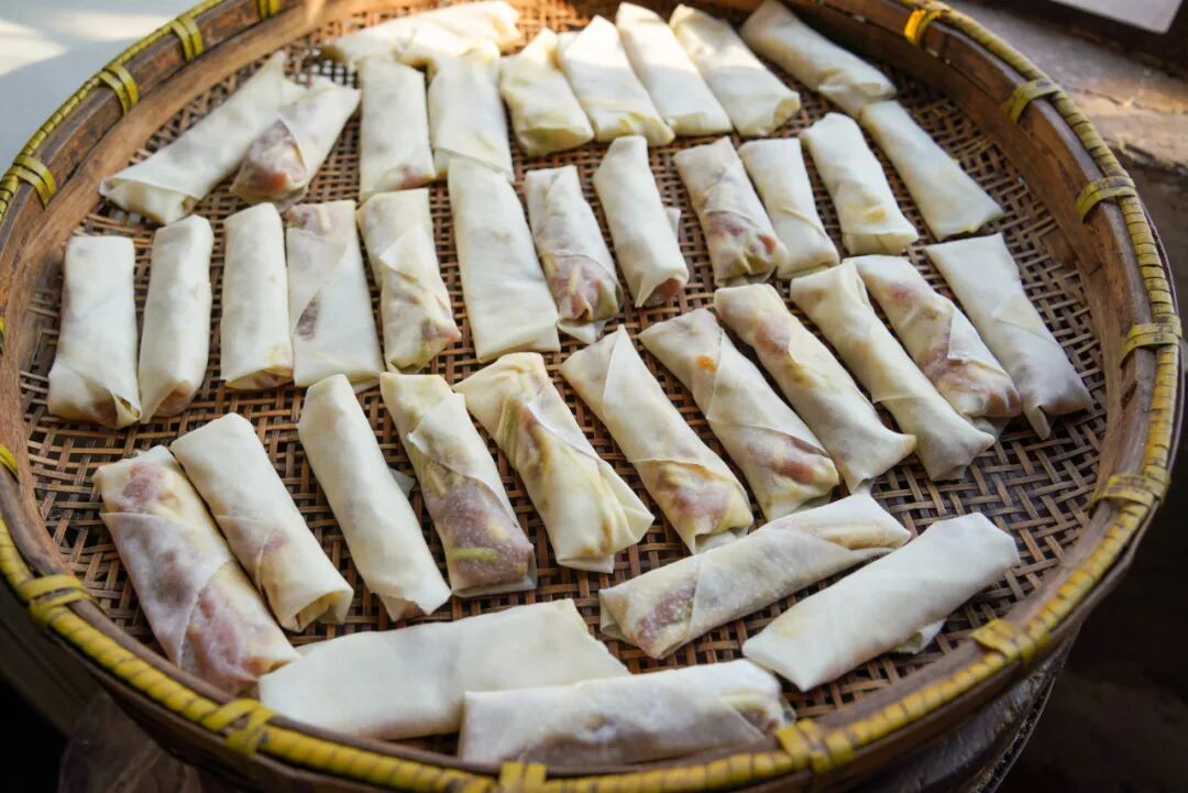 作为迎春之日,立春已有三千多年的历史,每至立春时节,人们不约而同地寻觅起早春的蔬菜。有一种可以把整个春天都“卷”起来的美食,就是老少咸宜的春卷啦! 今天就让我们跟着南桥镇沈陆村延安一组的村民何亚仙何阿婆一起,制作传统美食——韭黄鲜肉春卷! 先把鲜嫩的韭黄洗干净,切成两厘米左右的小段,和新鲜的猪肉碎放在一起搅拌均匀,再打入一个鸡蛋增加馅料的黏稠度。 调味只需要简单放入一点盐、料酒和酱油,再轻轻搅拌几下就可以开始包春卷啦! 何阿婆特别提醒,包的时候可是有小技巧的哦!把准备好的馅料放在春卷皮一角,先别急着包,春卷皮周围要涂点蛋清液,此时再轻轻卷起春卷,就能粘得牢牢的,保准不会散开。 包了满满一箩筐,开始起锅烧油!听到油锅热得滋滋作响,轻微冒泡,就可以轻轻放入生春卷开炸了。 注意要时不时翻面防止粘底,等表面泛起金黄的色泽以后,就可以捞起来装盘了,趁热咬上一口,汁水四溢,热气腾腾,一口一吃到一整个春天的滋味!