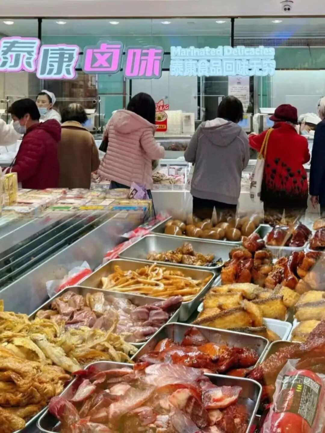 · 泰康食品:熟食窗口永远人头攒动,浓油赤酱的熏鱼、四喜烤麸、酱鸭,是上海人餐桌上必不可少的“冷盘先锋”,买回家就是“小时候的味道”。
