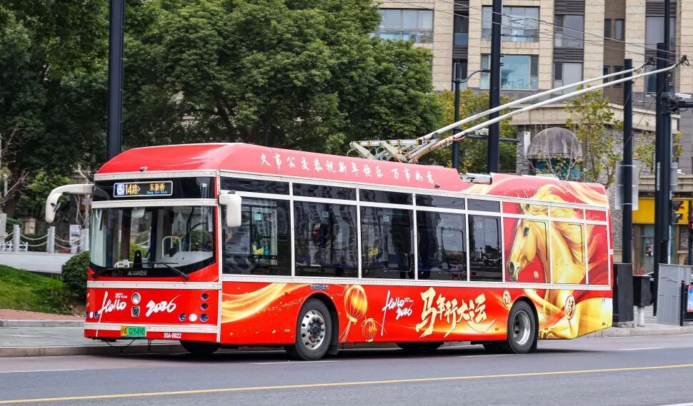 农历马年春节将至,申城街头年味渐浓。近日,拥有百年历史的公交14路悄然换上新春限定涂装,身披“中国红”新装驶上街头,成为一道流动的节日风景。 记者在江浦路中山北二路路口幸运地遇见了这辆中国红主题公交车。整车以吉祥喜庆的中国红为底色,车身两侧绘有奔腾的骏马,寓意“马到成功、一马当先”,涌动出温暖浓郁的年节气息。车身显著位置印有“Hello 2026,马上行大运”及“久事公交恭祝新年快乐万事如意”等字样,将传统祝福与当代语汇巧妙融合。剪纸、祥云等传统元素的点缀,进一步烘托出温馨祥和的春节氛围,为冬日城市增添了一抹亮色,吸引不少公交迷驻足拍摄。 公交迷房欣悦表示:“每年公交都有新春涂装,我一直在记录。今年车上的骏马栩栩如生,穿行在大街小巷,仿佛把年味传递给了每位乘客。” 这辆中国红限定涂装公交车不仅外观喜庆,乘坐体验也别具意义。乘客余知祺说:“14路的涂装经常更新,这次尤其红火,连乘客乘车的心情都跟着轻松愉悦起来。”乘客郑铭昊则兴奋地表示:“没想到能坐上这辆红色14路,听说全线只有这一辆,感觉特别幸运。快过年了,正好沾沾喜气图个喜庆。” 公交14路途经江浦路、控江路、大连路等多条主干道,贯穿多个居民区与商圈。春节期间,这辆“新春限定装”公交车将继续穿梭于城市之中,陪伴市民迎接新年。驾驶员吴仁琦表示:“希望借这一抹流动的中国红,向市民传递新春的祝福,共度祥和佳节。” 在走亲访友、出行购物时 不妨留心这份“马路上的年味” 与14路一起 红红火火迎新春 并肩迈向充满希望的2026年 文字:陈涛 图片:陈涛 视频:王子亮 编辑:查艺宁 *转载请注明来自上海杨浦官方微信