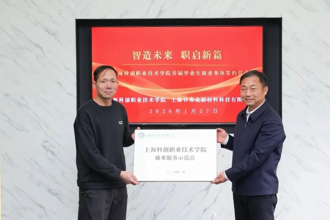 这个寒假,上海科创职业技术学院智能制造学院数控技术专业大三学生朱鹏飞提前开启“上班族”节奏,坚守岗位至春节放假前一天。与他同专业的共有7名学生,均为今年1月底实习期满后,直接与上海日弗龙新材料科技有限公司签订就业协议的学生。这也是该校自2023年创校以来的首单就业签约。