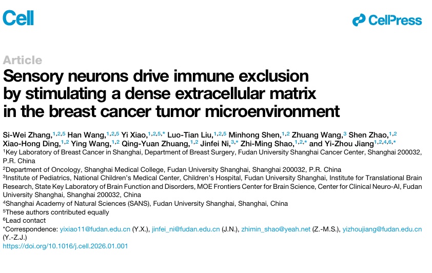 “本次研究的核心价值,不仅在于首次揭示了感觉神经重塑肿瘤环境、阻挡免疫细胞的关键机制,更在于开创性引入癌症神经科学的研究维度。”邵志敏展望,这一创新成果提示我们,未来抗癌治疗也需要打破单一视角,将“神经–肿瘤–免疫”作为整体系统考量,为乳腺癌精准治疗开辟新方向。