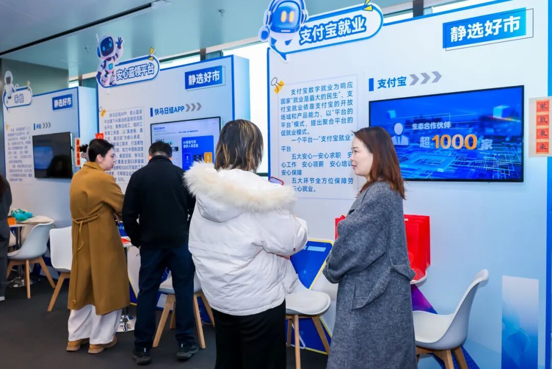 市集上,外服云知道(上海外服)、招聘云(云生未来)、AI劳法(金保信)、利唐智语(力德人才)、AJINGA(博金)等多款“HR+AI智能体”产品甫一亮相,就吸引了多家企业驻足咨询并围绕展示产品进行深入洽谈。开市首日,就顺利达成多项初步合作意向,实现了“以市促产、以产兴市”,促进人力资源服务行业数智化创新成果加速“落地”转化的良性互动。