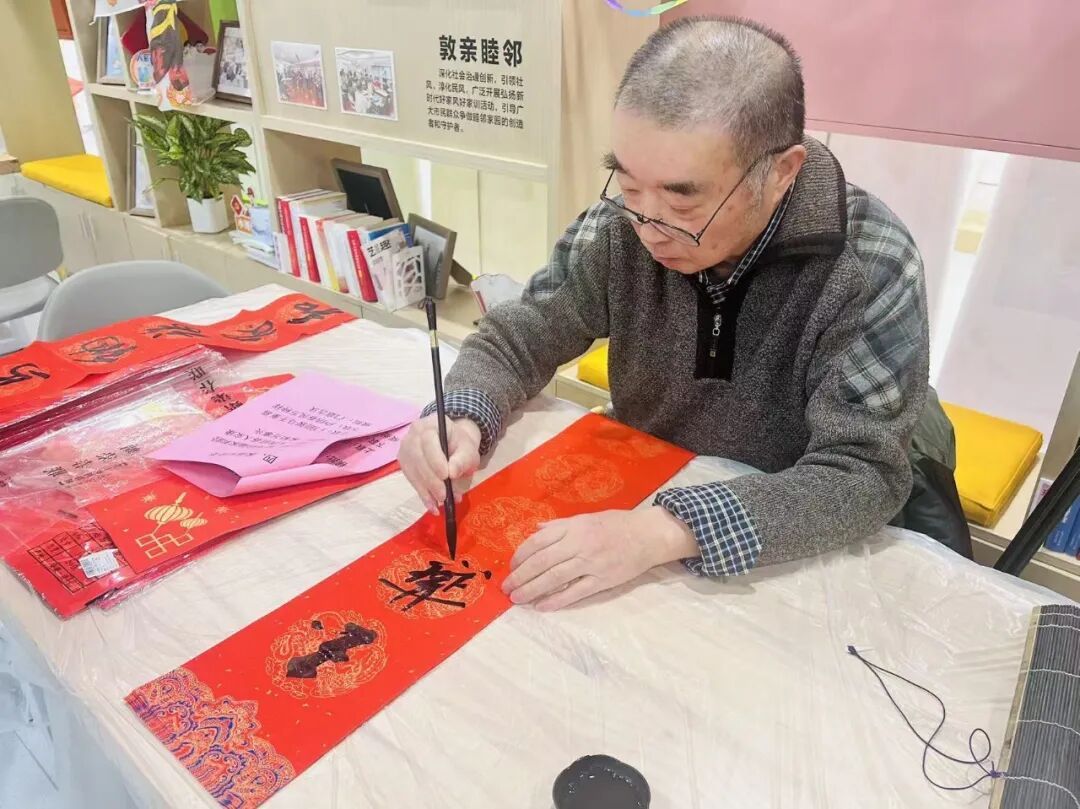 走进活动现场,一股浓郁的墨香夹杂着此起彼伏的欢笑声扑面而来。这儿没有生硬的宣传板,取而代之的是热气腾腾的“年俗市集”。在“翰墨送福”的摊位前,几张桌子被围得水泄不通,书法爱好者们笔走龙蛇,一个个力透纸背的“福”字刚一落笔,就被等候多时的居民喜滋滋地“抢”在手中。