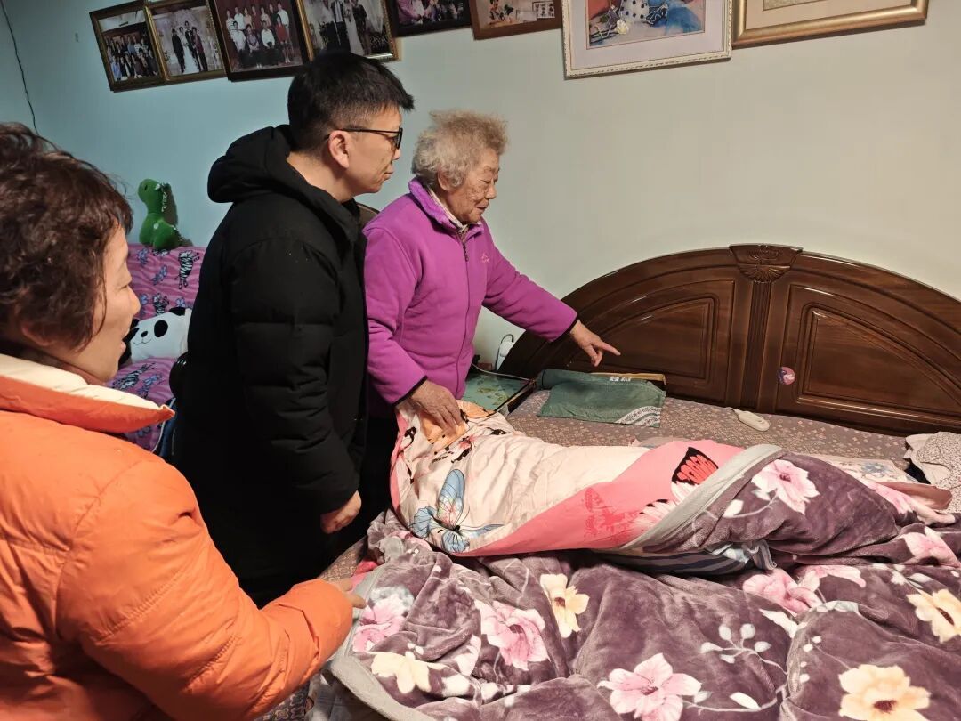 豫园街道始终牵挂着辖区特殊群体的生活状况,在降温之际,各居民区党总支书记带队开展了走访慰问。工作人员首先来到身患尿毒症且瘫痪在床的退役军人戴爷爷家中,淮海居民区党总支葛书记细心叮嘱其家属,有政策疑问或生活困难可随时联系居委。随后,慰问团队走访了刚就医返家的残疾老人吴爷爷和高龄独居老人林阿姨。林阿姨术后腿脚不便,且需多次往返浦东浦西两地,生活多有不便,淮海居委在温度骤降之日上门慰问。在林阿姨家中,葛书记详细询问了她的术后恢复情况和生活需求,叮嘱老人注意防寒保暖和居家安全,尽量减少外出。