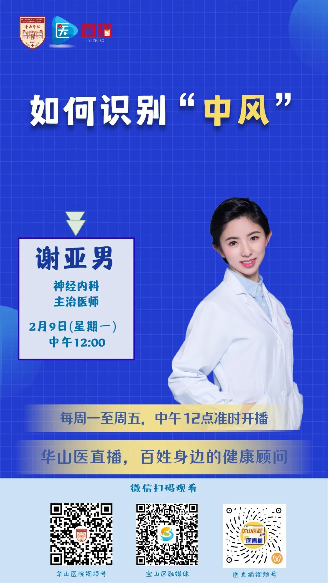 脑卒中(俗称“中风”)是我国居民首位致残和致死病因,救治是一场与时间的赛跑。如何第一时间识别身边人是否中风?怎样正确处理才能最大程度降低致残和死亡风险?本期医直播,复旦大学附属华山医院神经内科主治医师谢亚男将为您讲解脑卒中的识别要点与急救关键,守护家人健康。
