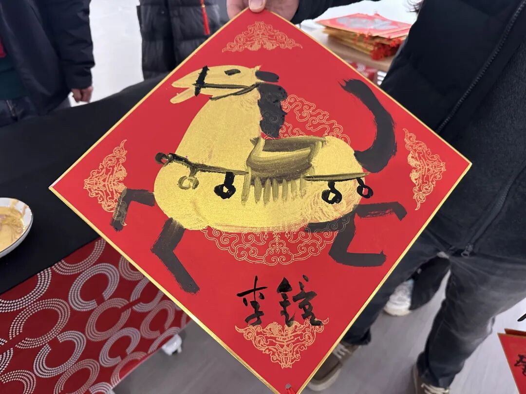 现场同样吸引了不少属马的居民朋友,“小马”“大马”都收到了马年专属的暖心祝福。居民围在艺术家旁边,看着他们挥毫泼墨,年味在笔墨书香中愈发浓郁。