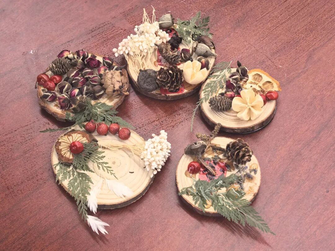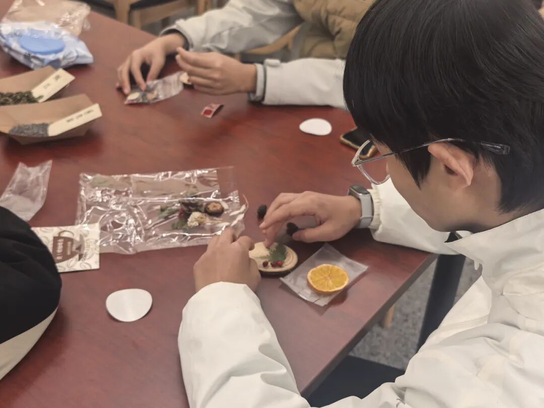参观结束后,活动进入了中药冰箱贴DIY环节。桌上摆放着艾叶、陈皮、菊瓣等干燥药材,淡淡的草本清香在空气中弥漫。在志愿者的耐心指导下,孩子们开始创作自己的本草图案。有的耐心地将菊瓣拼成花朵,有的用陈皮和艾叶拼出特别的纹理。当一件件独一无二的作品完成时,孩子们举着小小的冰箱贴,脸上绽放的笑容,成为了寒冷冬日里最温暖的画面。