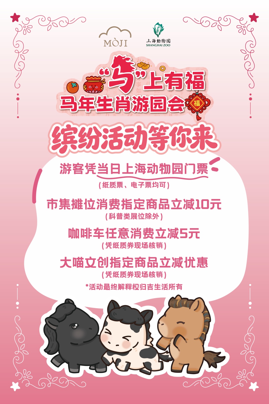 在农历丙午马年即将到来之际,2026年上海动物园马年生肖文化系列活动也将于2月10日拉开帷幕,整个活动将陪伴大家共度春节,直至3月3日结束。 马,象征着奋进、忠诚与祥瑞,承载着开拓进取的美好寓意。上海动物园以“万马奔腾 共绘新春”为主题,精心策划了一系列集文化传承、生态保护与互动体验于一体的生肖主题活动,为广大市民游客奉上一场场兼具传统韵味与现代气息的科普文化盛宴。 马年到来之际,园方提升马科动物展区福利与年味布置,还将增设小矮马展示区(宝妮乐园,近羊驼展区),增添喜庆氛围。 活动时间:整个活动期间
