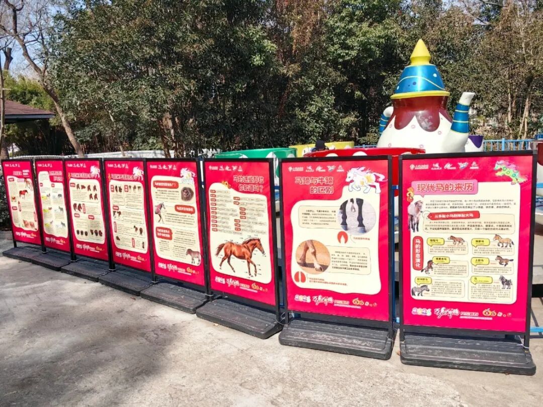 线路一(深度探索线):设计探索折页,游客需根据线索前往普氏野马、蒙古野驴、斑马等展区,观察并回答相关问题,领取马年限定文创和限定章。