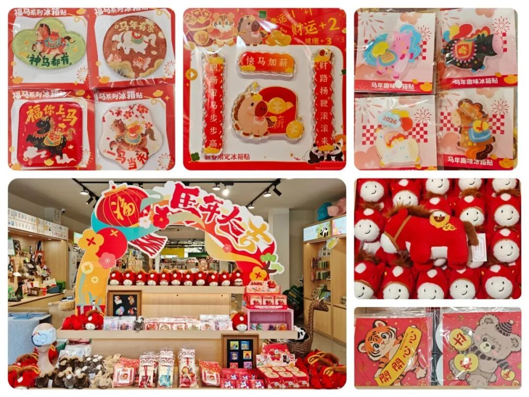 过年期间在线的文创产品共1400+种,游客可至园区内文创商店进行选购。大年初一至初七,游客可凭当日门票(纸质票/电子票/年卡均可),在动物园任一文创商店免费兑换马年生肖票根,同一文创商店每张门票限兑换一张(年卡用户活动期间在同一家文创店仅限兑换一张),票根每日限量兑换,兑完为止(具体规则以文创商店现场活动为准)。