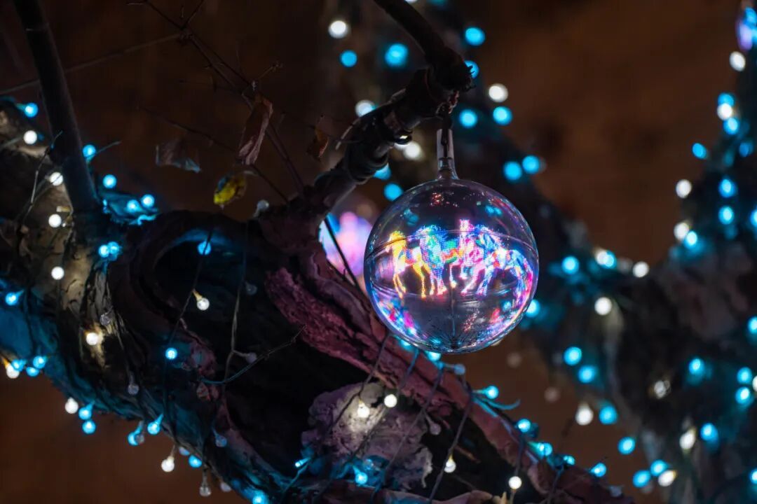 感受了风的柔美与奔马的磅礴,再来邂逅一份璀璨的惊喜!激光与镭射球在城市空间中编织出具有新春韵味的光线,每晚通过灯光的照耀会绽放如同钻石和烟花一般璀璨的光芒,将城市夜空还原为诗意的自然图景。
