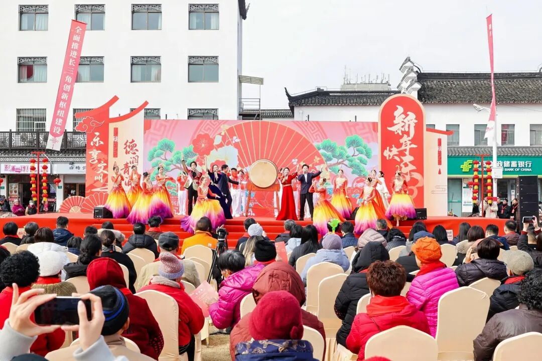 活动现场的文艺展演环节亮点纷呈,区“强基工程”培育的白鹤镇“荷尖少儿沪剧沙龙”的孩子们带来了《红歌联唱》。小演员们稚嫩却地道的乡音,婉转悠扬的唱腔,彰显着非遗薪火相传的蓬勃生机。知名滑稽戏演员阮继凯、诸弘宇联袂献演《来青浦过大年》,以海派特有的诙谐幽默细数青浦变化,引得台下笑声连连,掌声不断。伴随着歌舞《上春山》的青春律动,全场气氛被彻底点燃,浓郁的年味与欢腾的笑声交织,在水乡古镇的上空久久回荡。