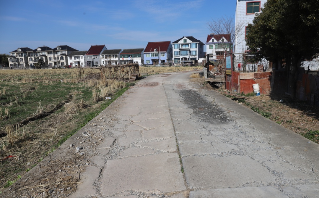 张堰镇甪里村8组道路全长550米,南起红豆杉西侧,北至甪里中心路,是周边村民日常出行、农耕生产的必经之路。
