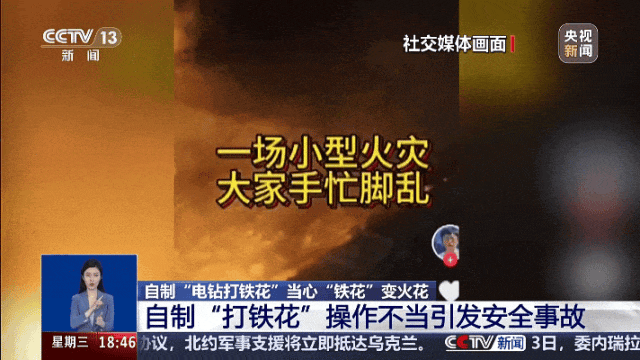 网友在家附近模仿“打铁花”表演,导致周边多处起火。